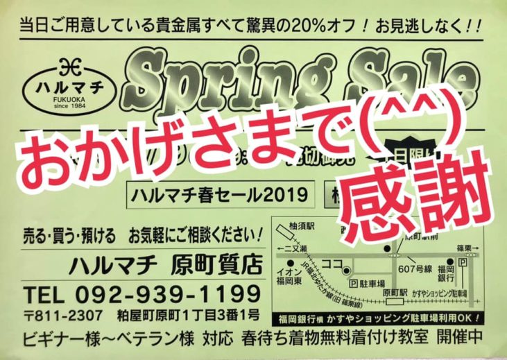 御礼 おかげさまで(^^) ハルマチ春セール2019 福岡の質屋ハルマチ原町質店