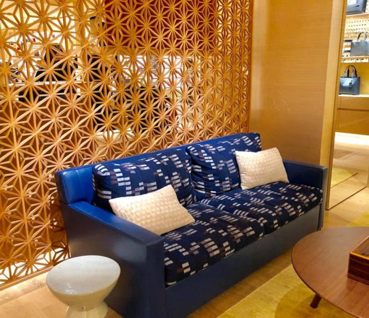 ルイ・ヴィトン博多阪急店の大川組子と博多織ソファー素敵なおもてなし♪