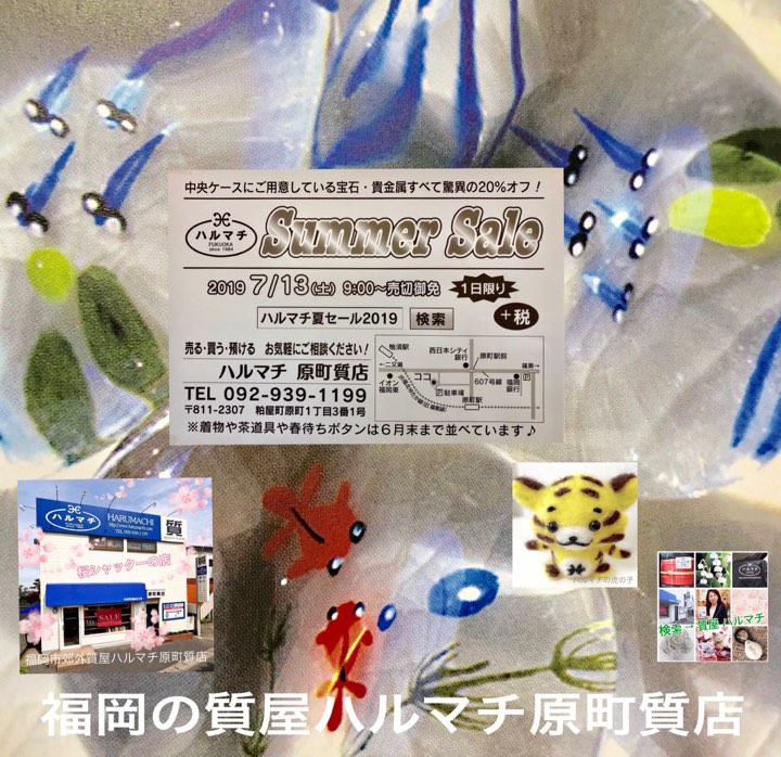 本日はいよいよハルマチ夏セール2019です!(^^) 福岡の質屋ハルマチ原町質店 ニュース 本日のオークション! お待たせいたしました!本日はいよいよハルマチ夏セール2019です(^^) 中央ケースにご用意しておりますジュエリーがすべて驚愕の20%オフ! この機会をどうぞお見逃しなく!