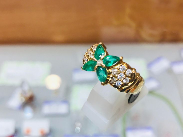 本日のお薦めはエメラルド&ダイアの指輪です。