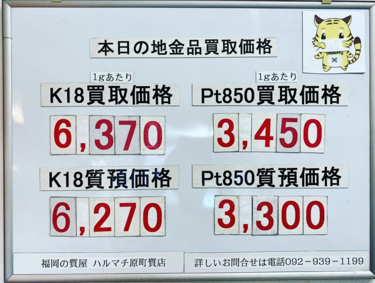 本日の18金買取価格¥6,418- プラチナ850買取価格¥3,550-