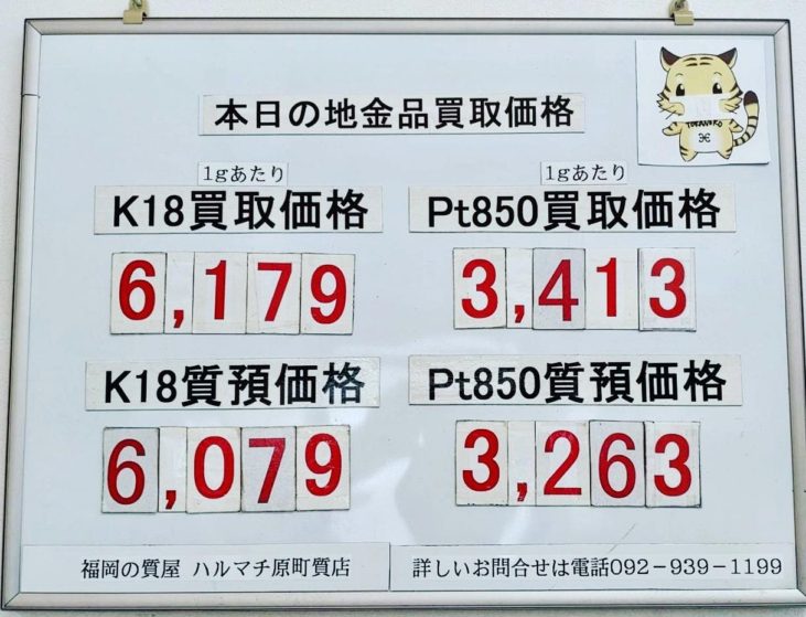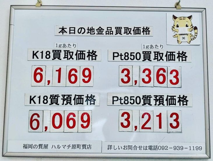 本日の18金買取価格¥6,193- プラチナ850買取価格¥3,335-