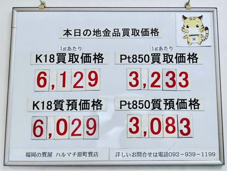 本日の18金買取価格¥6,129- プラチナ850買取価格¥3,233-