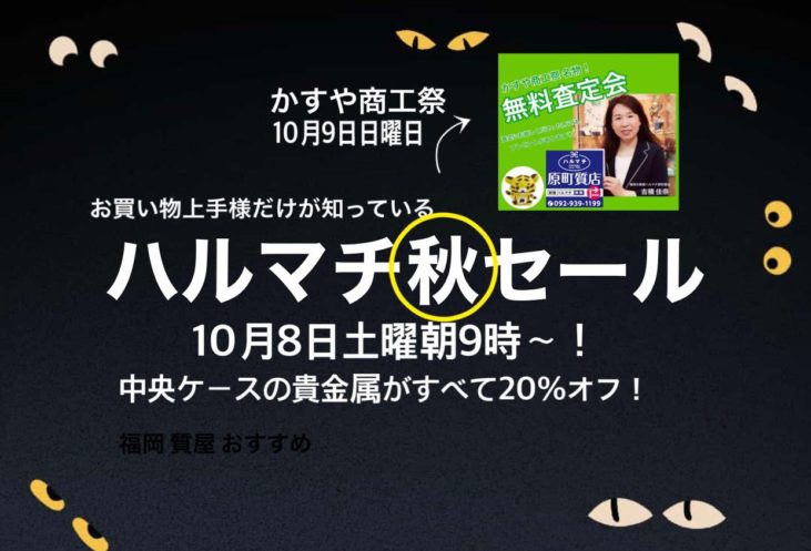 福岡市東区博多区隣接粕屋町JR原町駅前の質屋ハルマチ原町質店 はるまち秋セール2022
