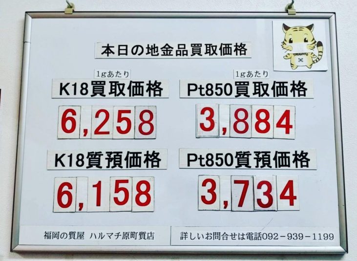 本日の18金買取価格¥6,258- プラチナ850買取価格¥3,884-