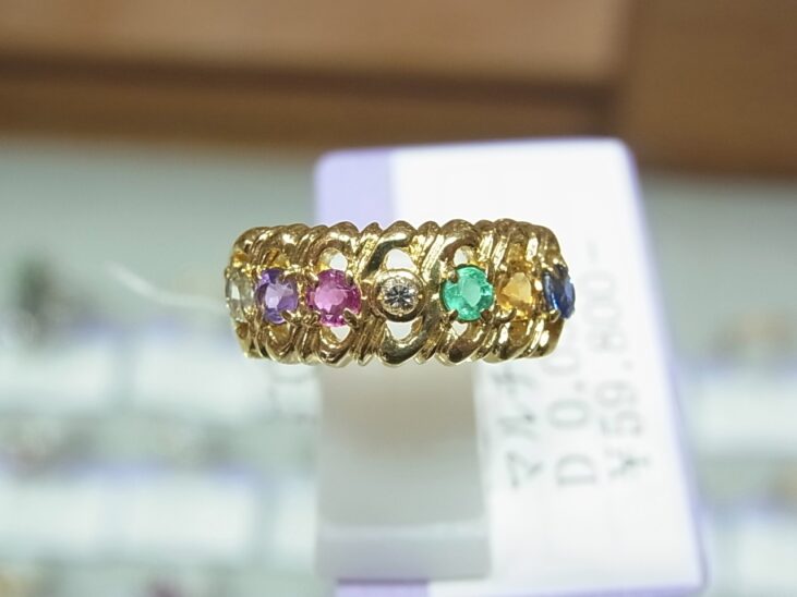 本日のおすすめは18金マルチ石の指輪です。