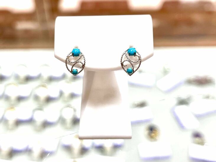 本日のおすすめはK18WG トルコ石のピアスです。