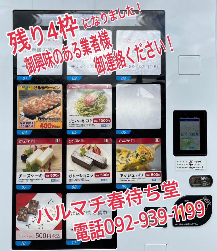 博多招福菓子じょかなん 除禍難 ハルマチ春待ち堂 冷凍自販機 粕屋うまかもん出店者様募集中78