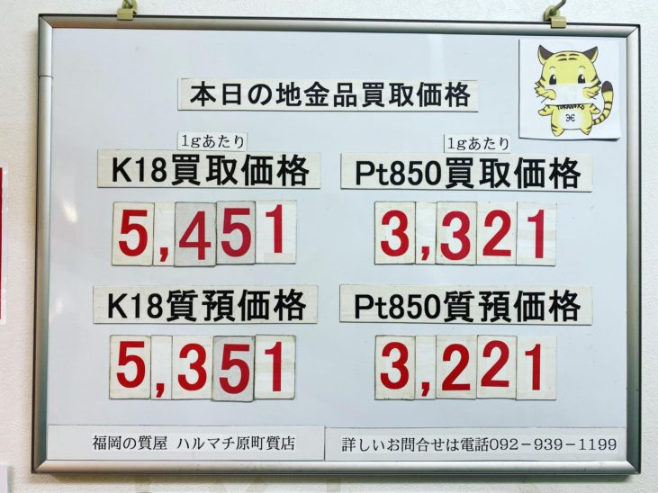 本日の18金買取価格¥6,116- プラチナ850買取価格¥3,334-